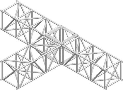 Flat section aluminium truss with 29 cm long sides. The most widely used of the flat, end-plated trusses. Ideal for use in reticular/grid structures and also perfectly suited for use alongside similar components supporting lightweight installations.