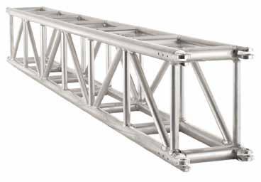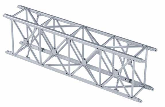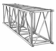 Rectangular section High Load aluminium truss with extraordinary dimensions; it is 84 cm wide, 146 cm high and 500 cm long, and weighs 430 kg. It is made in highperformance aluminium alloy EN AW-7003 T6, among the aluminium series with the best mechanical characteristics. Thanks to the double number of diagonals on the vertical faces, the Steroid version has better performances thank the Regular version. The truss can be used in large installations intended for entertainment, for temporary and semipermanent structures. At maximum load spans it undergoes virtually no bending.