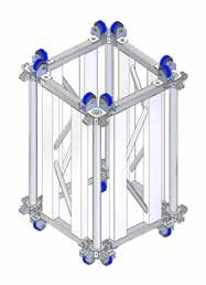 The MyT is a unique truss created from ultra-high strength EN AW-7003 aluminium alloy and benefits from an entirely bolted construction (no welded parts). For ease of transportation and handling, it is equipped with 4 large robust rubber wheels that allow the truss to be moved easily in many ground conditions. The MyT corner block is made from steel and is engineered to be obtain the maximum load capacity from the truss in any configuration.