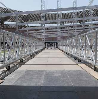 The most innovative solution…basically a revolutionary way to carry moving lights mounted on pre rig type of trusses. Differently from the standard trusses, in this version the mounting of the moving lights can be done by one person only.