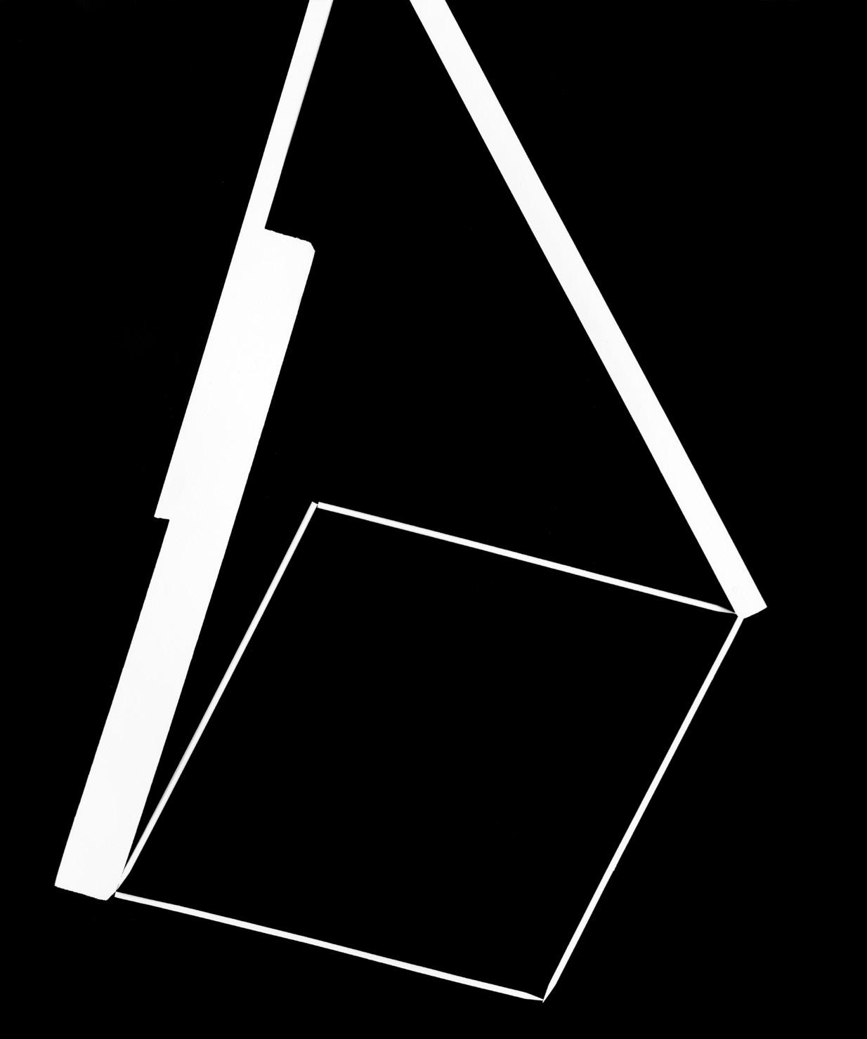 A first look at the Monolux series may surprise us due to the use of photograms, an experimental practice that inspired several avantgarde artists at the beginning of the XX century. The technique consists in a cameraless photography, produced in laboratories, and in which certain objects are directly positioned on the photographic paper that is then exposed to light. Serving as masks, the objects block or filter the passage of light. Thus, after the developing, their shadows imprint the white color on the paper, while the parts directly attained by the luminous rays are burned, taking on a black coloration. The resulting images are almost monochromatic. This technique has the specificity of not coming from a negative, originating unique pieces, and going against the technical reproducibility that generally characterizes the photographic medium.
