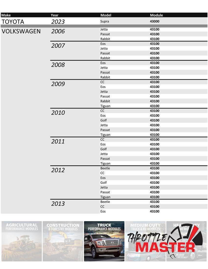 Make Year Model Module TOYOTA 2023 Supra 43000 VOLKSWAGEN 2006 Jetta 43100 Passat 43100 Rabbit 43100 2007 Eo s 43100 Jetta 43100 Passat 43100 Rabb it 43100 2008 Eos 43100 Jetta 43100 Passat 43100 Rabbit 43100 2009 cc 43100 Eos 43100 Jetta 43100 Passat 43100 Ra bb it 43100 Ti uan 43100 2010 cc 43 100 Eos 43100 Go lf 43100 Jetta 43100 Passat 43100 Ti uan 43100 2011 cc 43100 Eos 43 100 Go lf 43100 Je tt a 43100 Passat 43100 Ti uan 43100 2012 Beetle 43100 cc 43100 Eos 43100 Go lf 43100 Jetta 43100 Passat 43 100 Ti uan 43100 2013 Beetle 43100 cc 43100 Eos 43100