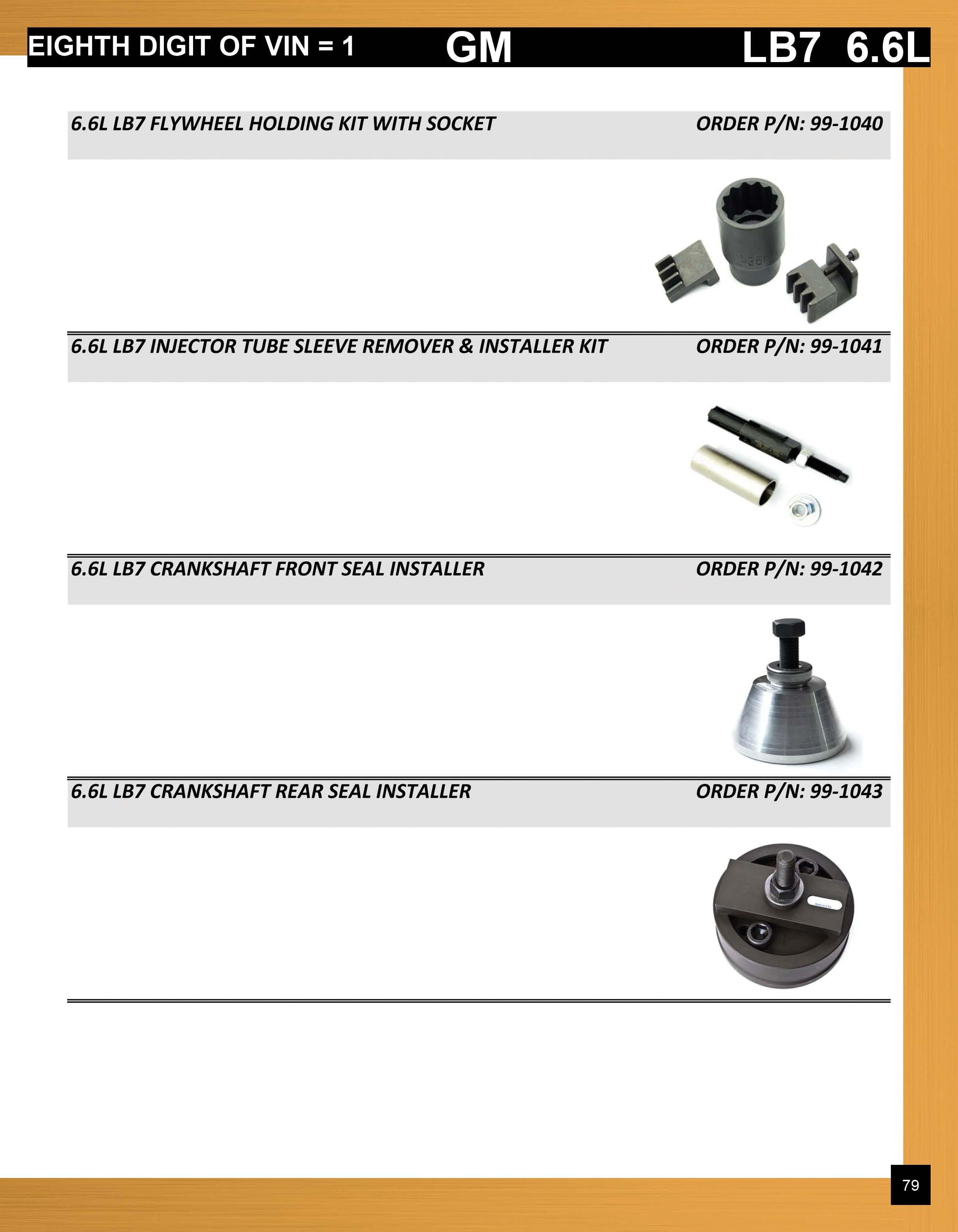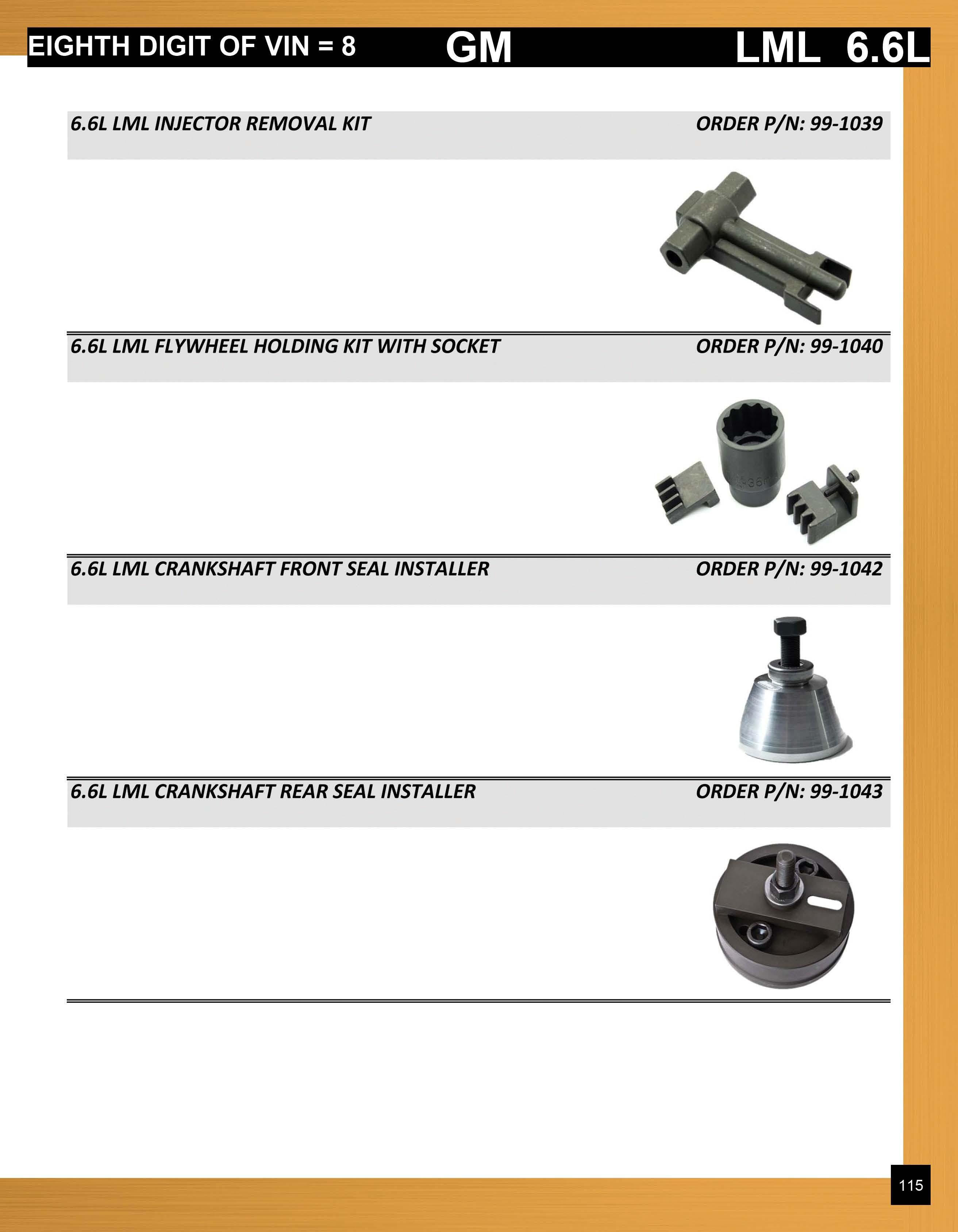 6.4L CYLINDER HEAD LIFTING BRACKET ORDER P/N: 99-1018 6.4L CRANKSHAFT REAR SEAL WEAR RING INSTALLER ORDER P/N: 99-1023 6.4L CRANKSHAFT FRONT SEAL INSTALLER ORDER P/N: 99-1029 • 6.4L CAMSHAFT ALIGNMENT TOOL ORDER P/N: 99-1025