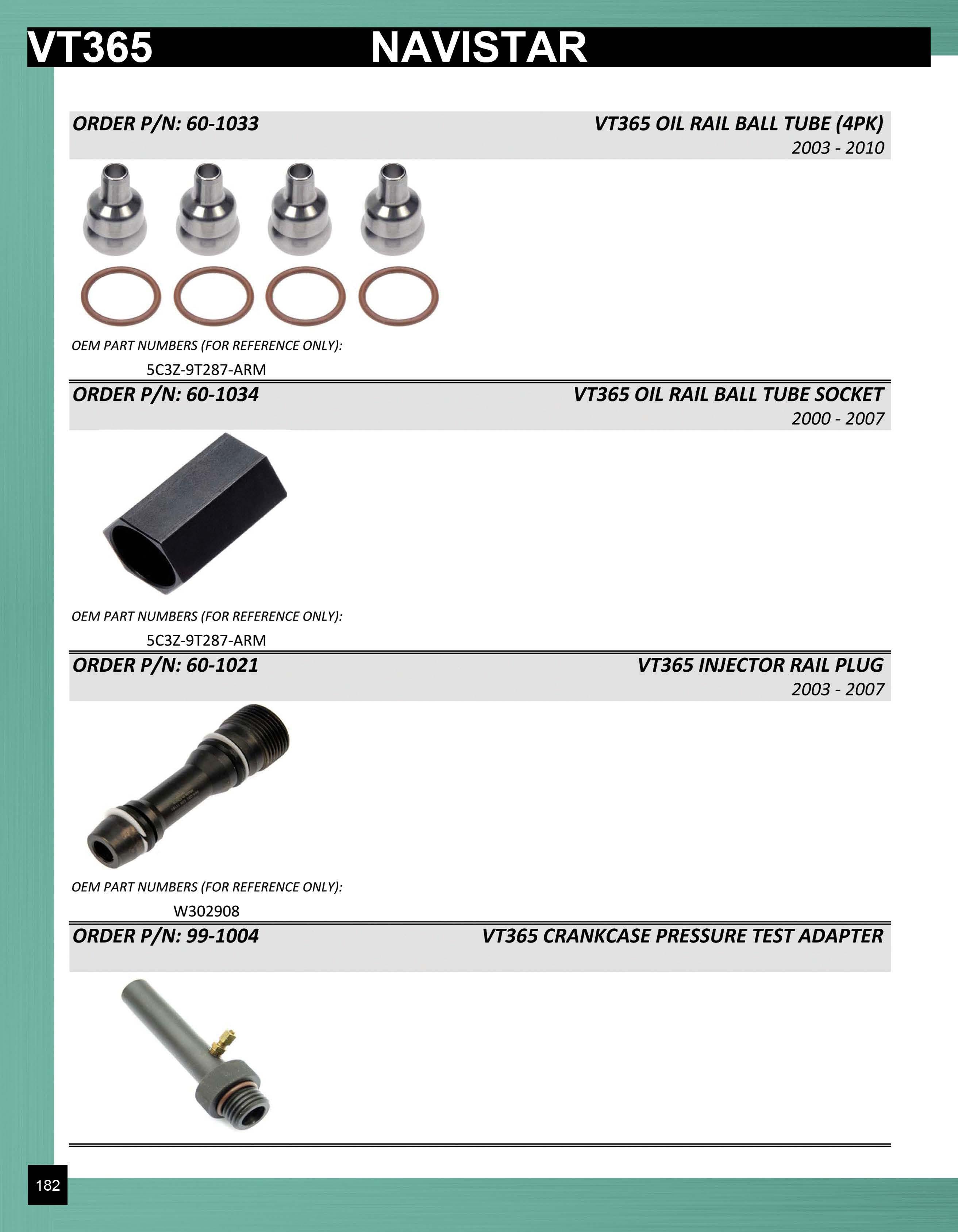 ORDER P/N: 60-1077 OEM PART NUMBERS {FOR REFERENCE ONLY) : 4C3Z6K854BA ORDER P/N: 60-1075 OEM PART NUMBERS {FOR REFERENCE ONLY): 3C3Z6K854AA ORDER P/N: 99-1073 ORDER P/N: 99-1057 18431750 1839135C1 6.0L MANIFOLD TO Y-PIPE 2005-2007 6.0L MANIFOLD TO Y-PIPE 2003-2004 6.0L FICM CONNECTOR PIN EXTRACTOR 2003-2010 6.0L CRANK SEAL WEAR RING REMOVER - FRONT
