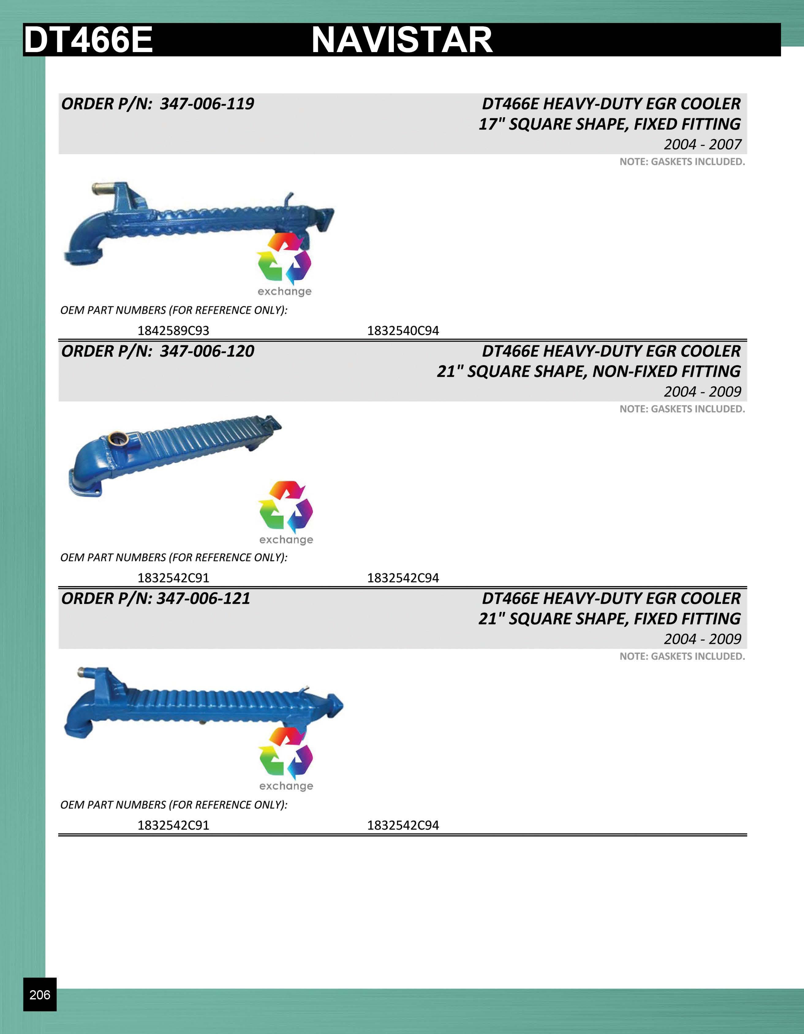 6.0L EGR COOLER 2003 2004 (Built after 09/2003) OEM PART NUMBERS (FOR REFERENCE ONLY) : 3C3Z9P456B 6.0L EGR COOLER GASKET KIT 2003- 2007 F-SERIES, EXCURSION 2004- 2010 £-SERIES OEM PART NUMBERS (FOR REFERENCE ONLY) : 3C3Z9439AA AP63447 3C3Z9433BJ 6.0L EGR COOLER STRAIGHT TUBE WITH GASKETS 2003- 2007 F-SERIES, EXCURSION 2004- 2010 £-SERIES NOTE: IMPROVED DESIGN OEM PART NUMBERS (FOR REFERENCE ONLY) : 4C3Z9P456AJ AP63446 1845274C92 ORDER P/N: 37-8008 exchange ORDER P/N: 60 -1026 rom rom tn tn tn tn ogf _QQ,lllu 1840702C97 ORDER P/N: 60-1025 ro ro ro tx:l mrorom ogf 00 : ,lfltl 1845145C99
