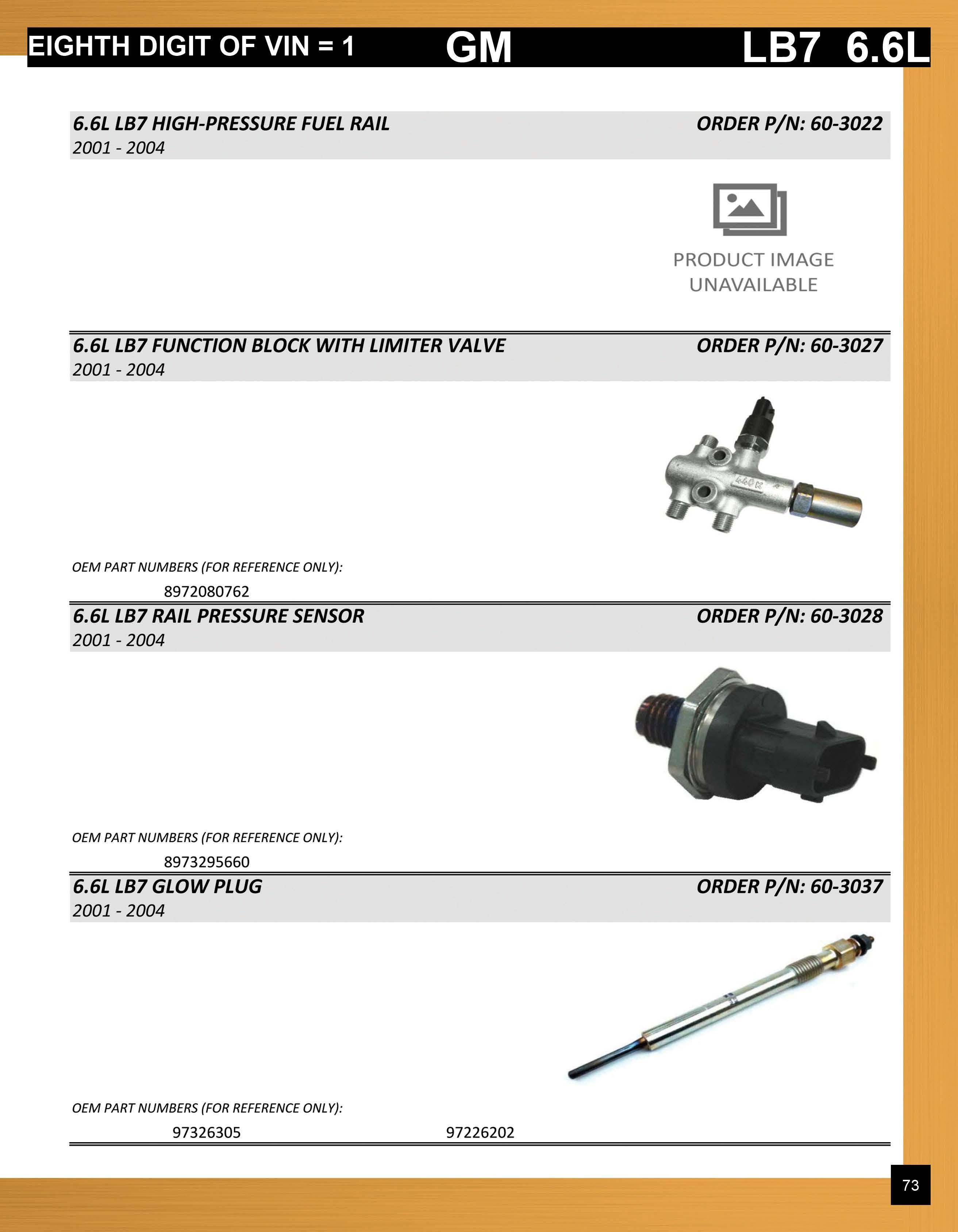 ORDER P/N: 60-1010 OEM PART NUMBERS (FOR REFERENCE ONLY) : F81Z9G270BA ORDER P/N: 60-1047 OEM PART NUMBERS (FOR REFERENCE ONLY) : F4TX12A342A DS095A ORDER P/N: 60-1059 OEM PART NUMBERS (FOR REFERENCE ONLY) : F81Z12B533AC 7.3L FUEL FILTER CAP 1998- 2003 F-SERIES, £-SERIES, EXCURSION (Built after 1/13/1998) 1831193C91 ZDll GP138 1826634(94 RK31449 7.3L GLOW PLUG 1994-2003 1820697(1 7.3L GLOW PLUG CONTROLLER 1994-2003 1831646(1
