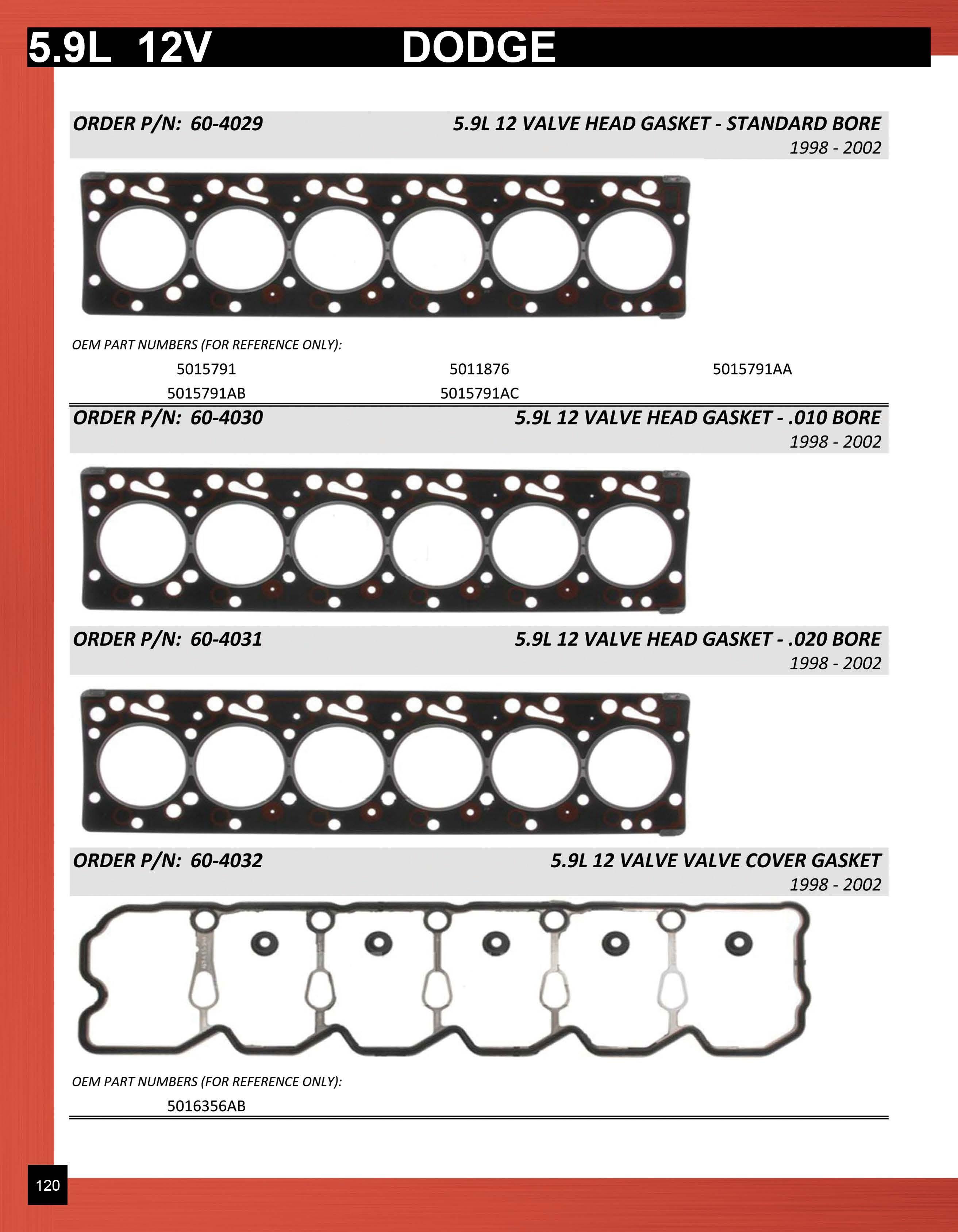 ORDER P/N: 60-1091 ORDER P/N: 60-1094 OEM PART NUMBERS {FOR REFERENCE ONLY) : 1850307Cl ORDER P/N: 60-1083 OEM PART NUMBERS (FOR REFERENCE ONLY) : SC4Z9448A ORDER P/N: 60-1086 OEM PART NUMBERS {FOR REFERENCE ONLY) : 3C3Z6701AA 6.0L 20MM DOWEL HEAD SET 2006-2010 (ENGINE SERIAL# 299093 & UP I 3723722 & UP) NOTE: WITHOUT BOLTS 6.0L 20MM DOWEL HEAD GASKET 2006-2010 (ENGINE SERIAL# 299093 & UP I 3723722 & UP) 6C3Z9448A 6.0L EXHAUST MANIFOLD GASKET 2003-2010 6.0L MAIN SEAL & MAIN SEAL COVER GASKET- REAR 2003-2010 3C3Z6D083AA