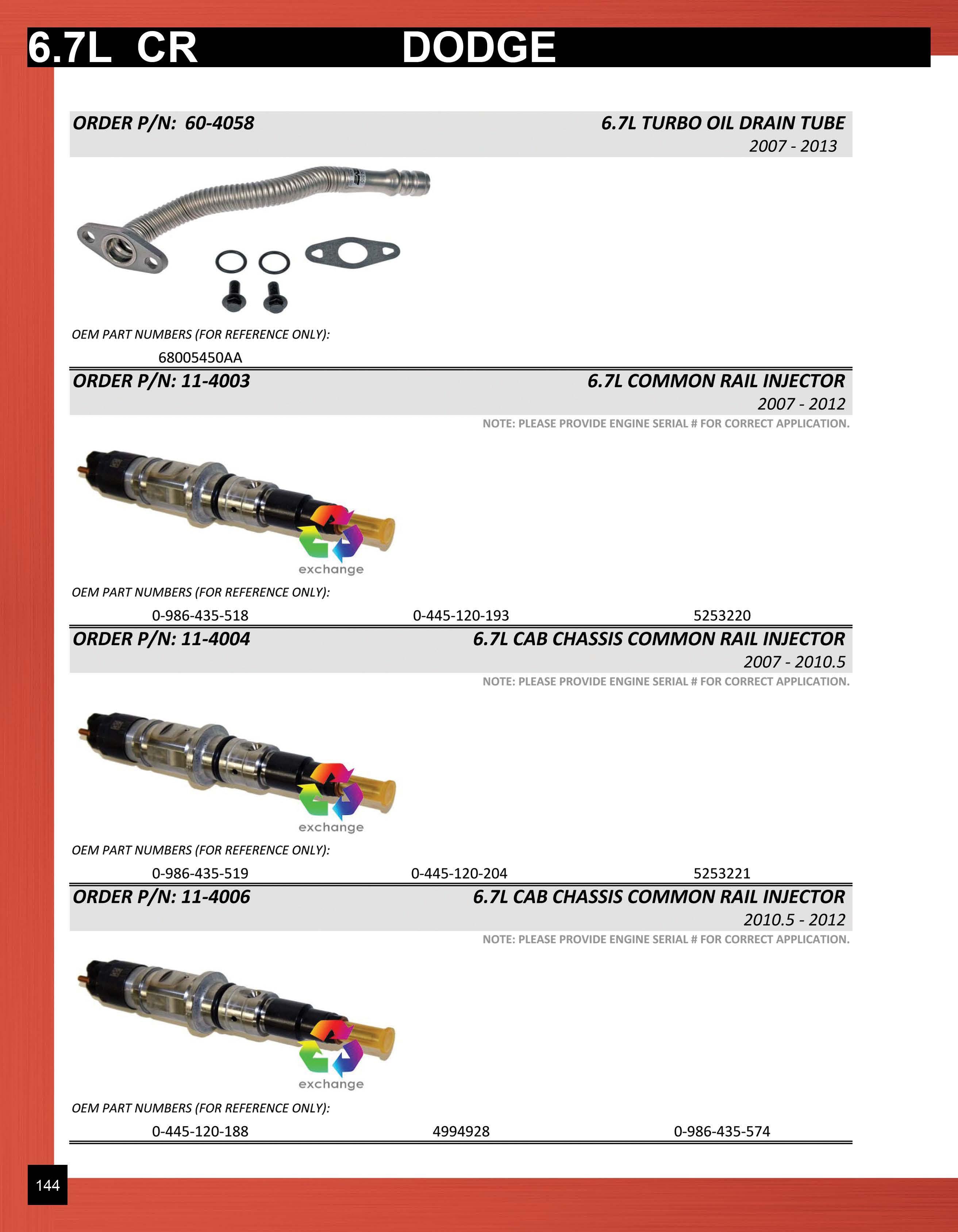 ORDER P/N: 30-7002 0-445-010-649 ORDER P/N: 60-1114 OEM PART NUMBERS {FOR REFERENCE ONLY): 1C3Z9J307A ORDER P/N: 60-1113 PRODUCT IMAGE UNAVAILABLE OEM PART NUMBERS {FOR REFERENCE ONLY): BC3Q9417AA 12601645 ORDER P/N: 60-1116 PRODUCT IMAGE UNAVAILABLE OEM PART NUMBERS (FOR REFERENCE ONLY) : BC3Q9D280AC 0-986-437-422 12641035 6.7L COMMON RAIL PUMP 2011-2014 BC3Z9A543A 6.7L MPROP 2010-2014 6. 7L HIGH-PRESSURE SUPPLY PUMP SEAL 2010-2014 BC3Z9417A AL3Q9417AA 6. 7L FUEL RAIL - RIGHT 2010-2014