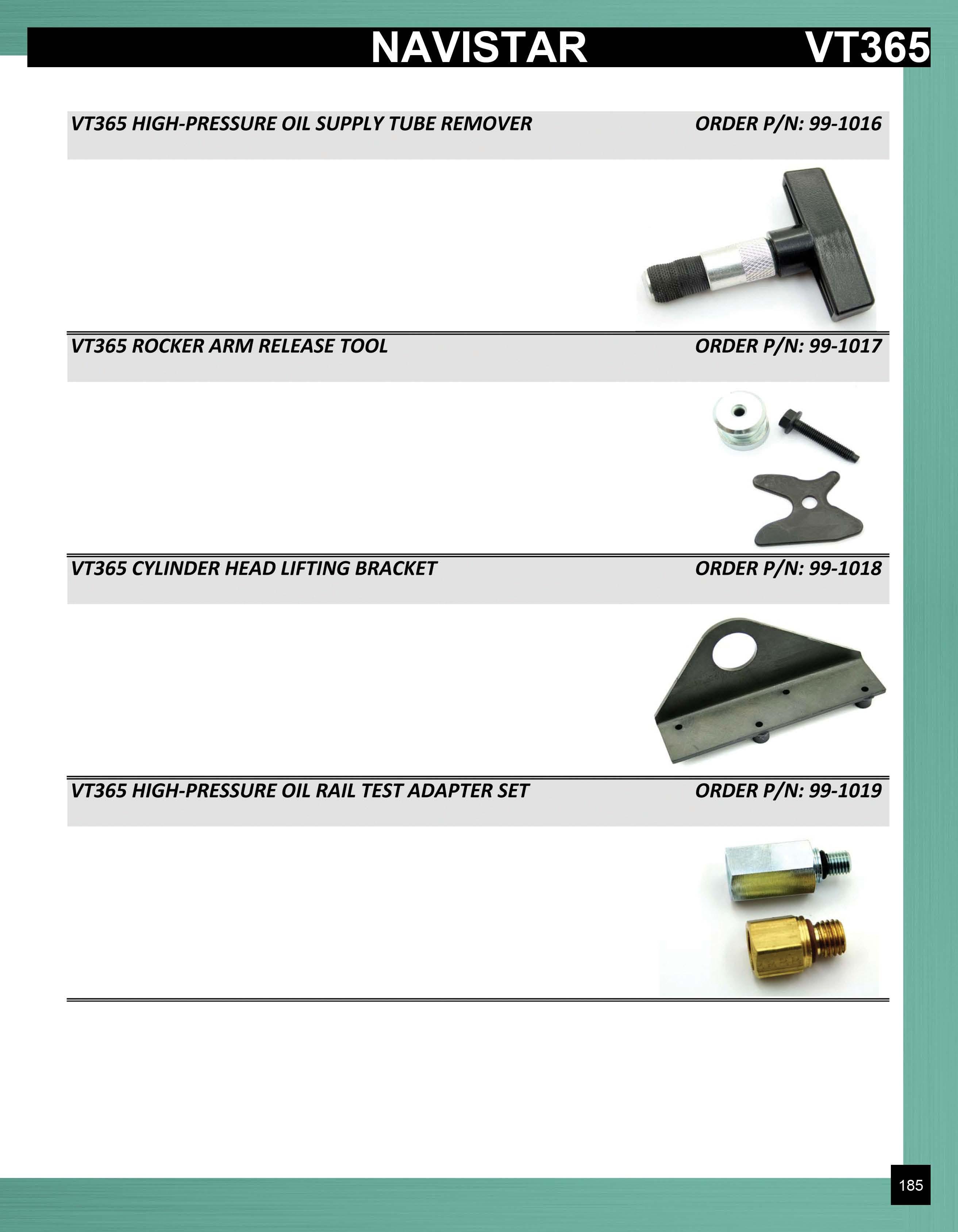 ORDER P/N: 99-1018 6.0L HIGH-PRESSURE OIL SUPPLY TUBE REMOVER ORDER P/N: 99-1018 6.0L ROCKER ARM RELEASE TOOL ORDER P/N: 99-1018 6.0L CYLINDER HEAD LIFTING BRACKET ORDER P/N: 99-1019 6.0L HIGH-PRESSURE OIL RAIL TEST ADAPTER SET