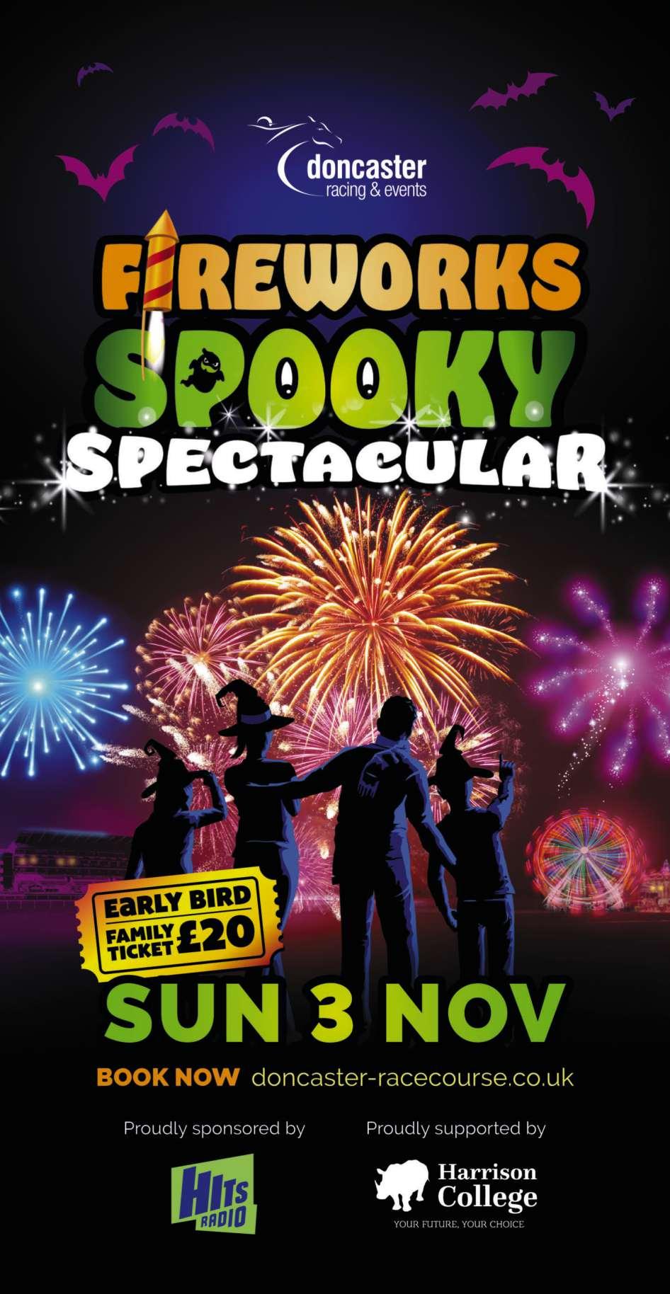 We’d love you to join us on Sunday 3rd November for our Fireworks Spooky Spectacular! Enjoy all our FREE family entertainment before we light up the skies over Doncaster Racecourse with our colourful fireworks display!