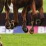 Blinkers worn first time by No. 5. Sheepskin Cheek Pieces worn first time by No. 1.