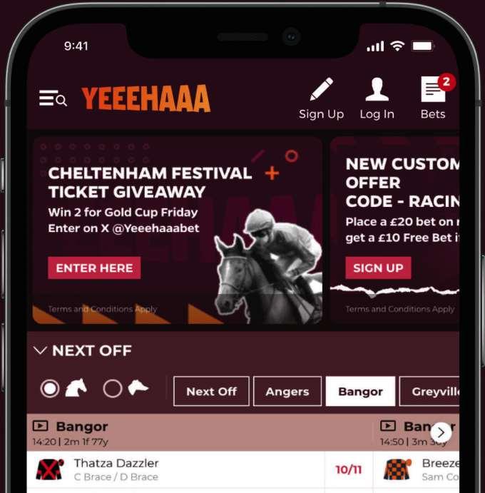 First Race 1.57 - THE BEST ODDS GUARANTEED AT YEEEHAAA.BET MAIDEN HURDLE RACE (CLASS 4) (GBB RACE) Distributed in accordance with the Stakes and Prize Money Code. £4193 to the winning horse The second to receive £1931, the third £965 and the fourth £483. for maiden four yrs old and upwards. Enter by noon, March 22nd and pay £38 stake, Declare by 10.00 a.m. March 26th. Weights: 4-y-o 10st 9lb; 5-y-o and up 11st 7lb Fillies and mares allowed 7lb. Yeeehaaa.bet will give a prize to the person who, in their opinion, is responsible for the horse judged to be the best turned out in this race. 12 entries at £38. - Closed March 22nd, 2024. Owners Prize Money. Winner £3213; Second £1607; Third £803; Fourth £402. (Penalty Value £4193.42)