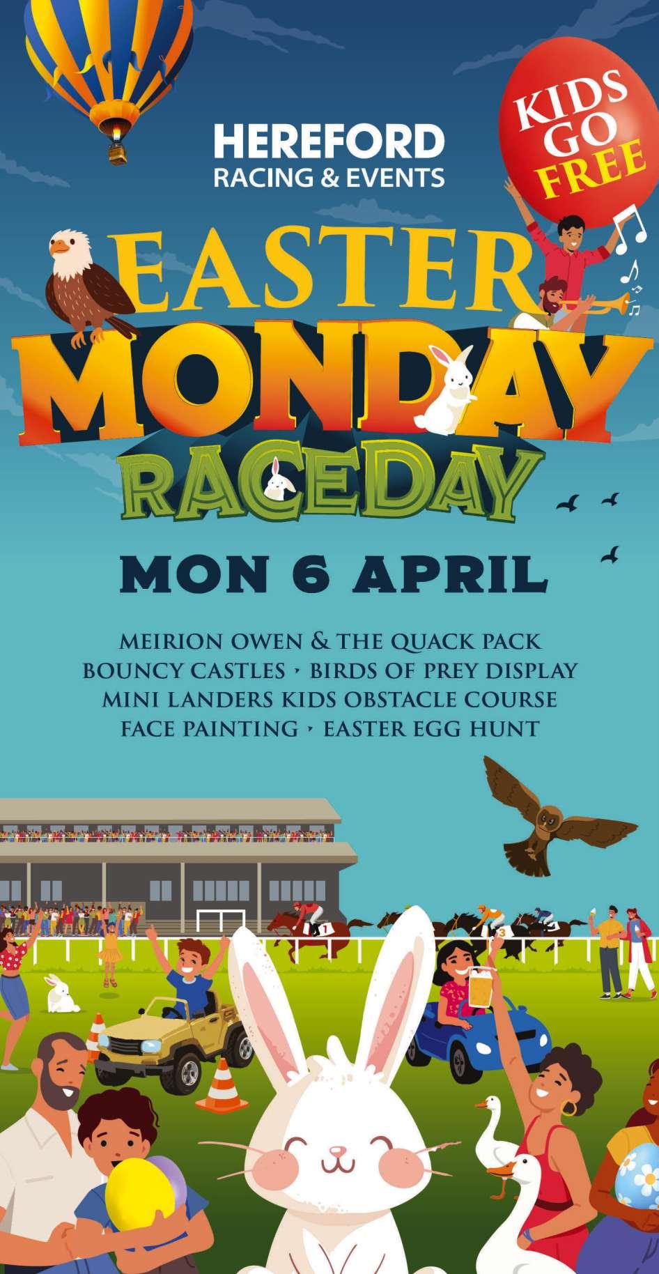 First Race 1.30 - THE HEREFORD EASTER MONDAY FAMILY RACEDAY FILLIES’ JUVENILE MAIDEN HURDLE RACE (CLASS 4) (Herring Queen Series Qualifier) (GBB RACE) Distributed in accordance with the Stakes and Prize Money Code £5446 to the winning horse The second to receive £2509, the third £1254 and the fourth £628. for juvenile maiden four yrs old fillies only. Enter by noon, February 5th and pay £50 stake, Declare by 10.00 a.m. February 9th. Weights: 11st 2lb each. Hereford Racecourse have kindly sponsored this race and will present a winning memento to the winning owner In addition, they will present a prize to the person who, in their opinion, is responsible for the horse judged to be the best turned out Horses which have been placed in the first six in this race will qualify for the £100,000 Final (A Class 2 Handicap) of the Herring Queen Mares’Novices’Hurdle Race Series, to be run over about two miles at Kelso on Saturday, 21st March, 2026. 12 entries at £50. - Closed February 5th, 2026. Owners Prize Money. Winner £4173; Second £2087; Third £1043; Fourth £522. (Penalty Value £5446)