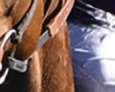 Tongue Strap worn by No. 6. Sheepskin Cheek Pieces worn by No. 3.