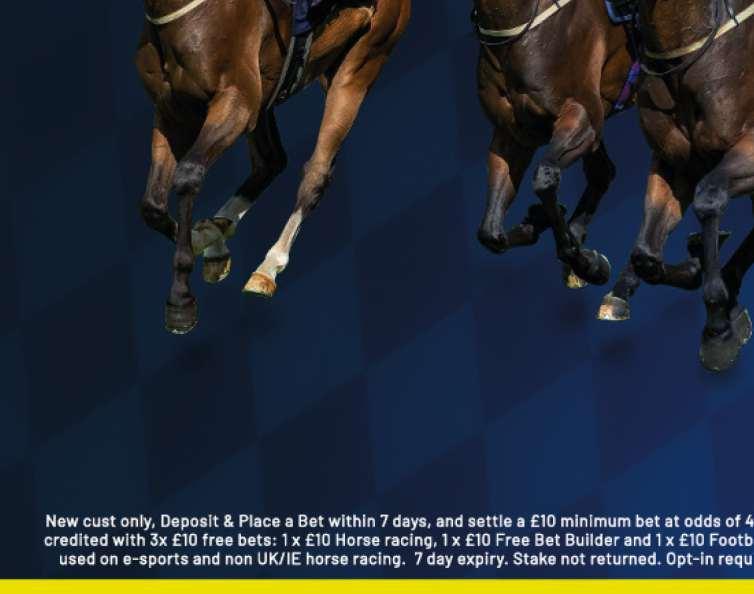 Division of Races section of the Race Administration Code for the purposes of this race. PLEASE NOTE: In accordance with the provisions of paragraph 9 of the Weights and Handicapping Code a horse must have run three times or more in order to qualify to run in this race. 15 entries at £750. - Closed April 12th, 2025. Owners Prize Money Winner £60945; Second £30480; Third £15240; Fourth £7620; Fifth £3810; Sixth £1905. (Penalty Value £77310) SS SEE PAGE 38 FOR THIS RACE Fourth Race 3.00 - THE BETMGM ALL-WEATHER CHAMPIONSHIPS MILE HANDICAP STAKES (CLASS 2) Distributed in accordance with the Stakes and Prize Money Code. £77310 to the winning horse The second to receive £36255, the third £18135, the fourth £9060, the fifth £4530 and the sixth £2265. for four yrs old and upwards, which have run a minimum of three times from 22 October, 2024 to 11 April, 2025 (inclusive) on the all-weather surfaces in Great Britain, Ireland and France; or twice on the all-weather surfaces in Great Britain, Ireland, France and once in Dubai at Meydan (dirt) or in Saudi Arabia at King Abdulaziz Racetrack (dirt). Enter by noon, April 12th and pay £750 stake, Declare by 10.00 a.m. April 16th. Lowest weight 8st 2lb; Highest weight 9st 12lb Penalties, after April 5th, 2025, for each race won 4yo to 6yo 5lb; 7yo and up 4lb NOTE: Any horse rated above 110 shall initially be treated as having that rating and the highest weight allotted shall be 9st 12lb. Subsequently, the excess over 110 in any rating shall be allotted to that horse without limitation to the highest weight to be carried BETMGM have kindly sponsored this race and will present a memento to the winning owner, trainer and jockey. They will also present £100 to the winning member of racing staff who looks after the winning horse. In addition, £100 cash prize will be awarded to the person responsible for the horse judged by them to be best turned out in this race All number cloths to be carried in this race have been sponsored and will carry the name/logo of BETMGM The sponsorship payment of £500 will be distributed equally amongst all horses starting in this race in accordance with paragraphs 24 to 27 of the Stakes and Prize Money Code This race will be restricted to 14 runners plus two reserves The two reserves will be nominated as R15 and R16. The procedure for the allocation and operation of the reserves protocol will be as detailed in the notice headed ‘Reserves’ which has been published in The Racing Calendar and which also appears in the important notices following the Standard Conditions on the Racing Bulletin area of the BHA Racing Administration Internet site www.racingadmin.co.uk. Trainers are reminded of the provisions of paragraph 41 of the Race Entry Code which require that they must notify the Racing Calendar Office immediately when the decision has been made not to run This will maximise the list of runners. For full details, please see www.awchampionships.co.uk/ take-part/championship-rules/. The British Horseracing Authority has modified the Declaration of Jockey section of the Race Entry Code and the Division of Races section of the Race Administration Code for the purposes of this race. PLEASE NOTE: In accordance with the provisions of paragraph 9 of the Weights and Handicapping Code a horse must have run three times or more in order to qualify to run in this race. 17 entries at £750 - Closed April 12th, 2025. Owners Prize Money. Winner £60945; Second £30480; Third £15240; Fourth £7620; Fifth £3810; Sixth £1905. (Penalty Value £77310) 5 Eliminated Under Rules (I)9 and (I)10. SS SEE PAGE 44 FOR THIS RACE