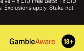 New customers only 7 days to place qualifying bet of £10 at 1/1 (2.0) to receive 4 x £10 Free Bets. 7 day expiry Exclusions apply Stake not returned. 18+. Full T&Cs apply