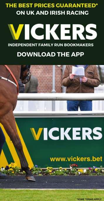 Third Race 2.40 THE GO RACING WITH VICKERS.BET HANDICAP STEEPLE CHASE (CLASS 5) Distributed in accordance with the Stakes and Prize Money Code. £3703 to the winning horse The second to receive £1706, the third £852, the fourth £427, the fifth £350 and the sixth £350. for four yrs old and upwards, Rated 0-105 (also open to such horses rated 106 and 107 see Standard Conditions). Enter by noon, October 10th and pay £34 stake, Declare by 10.00 a.m. October 14th. Penalties, after October 8th, 2022, for each steeple chase won 7lb. A cash prize will be awarded to the person with the best turned out horse. 14 entries at £34. Closed October 10th, 2022. Owners Prize Money. Winner £2838; Second £1419; Third £709; Fourth £355; Fifth £280; Sixth £280. (Penalty Value £3703.28)