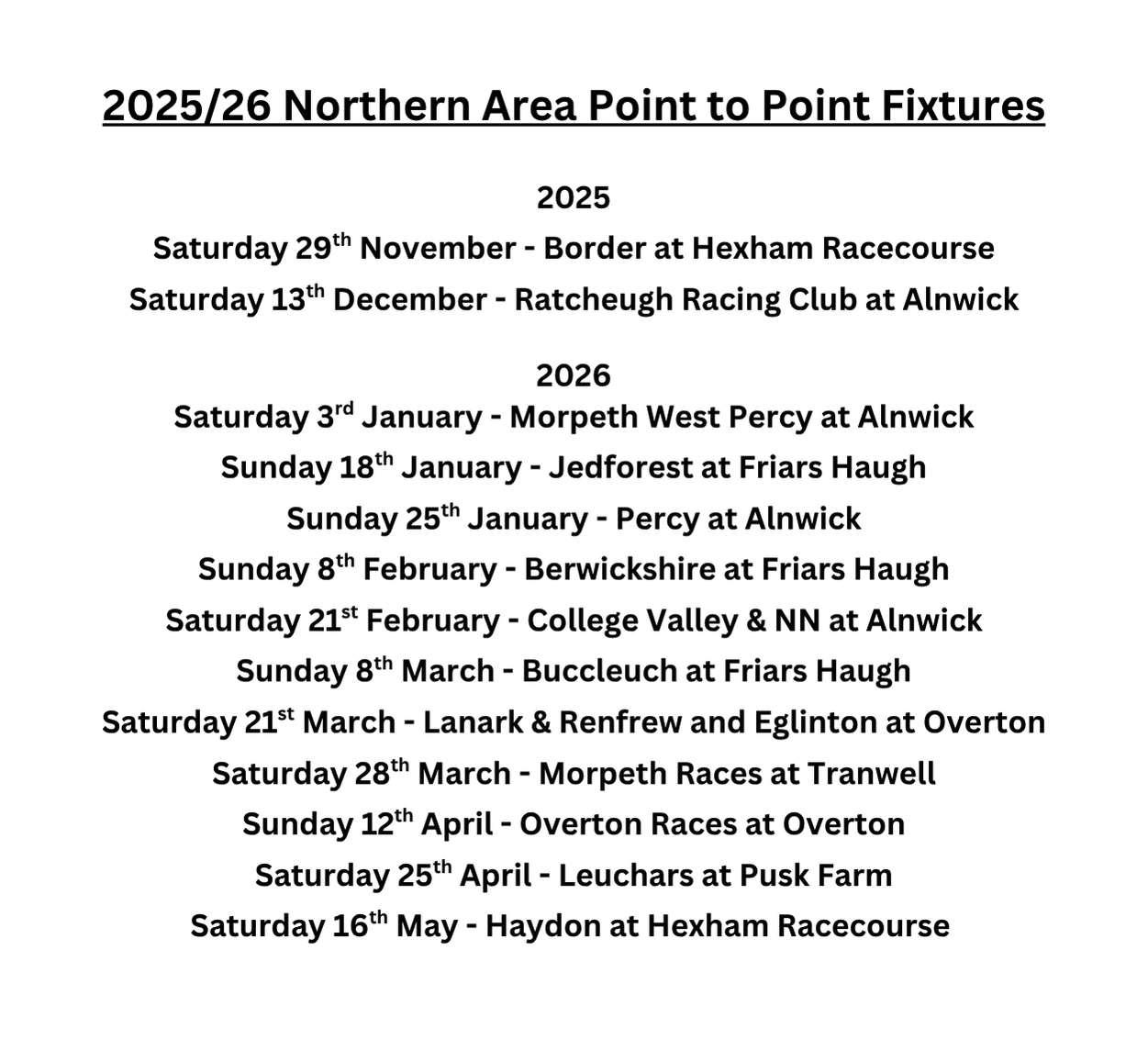 First Race 12.40 - THE BETWRIGHT BET THE WRIGHT WAY NOVICES’ HURDLE RACE (CLASS 4) (Go North Night Nurse Series Qualifier) (GBB RACE) Distributed in accordance with the Stakes and Prize Money Code. £4193 to the winning horse The second to receive £1931, the third £965 and the fourth £483. for novice four yrs old and upwards, which have not won more than one hurdle race. Enter by noon, November 18th and pay £38 stake, Declare by 10.00 a.m. November 22nd. Weights: 11st each Fillies and mares allowed 7lb Penalties, a winner of a hurdle race 7lb. A cash prize will be awarded to the person with the best turned out horse. This race is a qualifier for the Go North Night Nurse Hurdle Series Final, to be run over a distance of about 2m 4f at Musselburgh on 20th March, 2026. In order to qualify for the Final, horses must have Started in three or more Jump races in the North during the current season, at least one of which must have been a Go North Night Nurse Series qualifier PLEASE NOTE: A novice or juvenile horse shall only be qualified to run in the Final if it has run a minimum of three times in Hurdle Races in Great Britain, Ireland or France in accordance with paragraph 14 of the Weights and Handicapping Code. 12 entries at £38. - Closed November 18th, 2025. Owners Prize Money. Winner £3213; Second £1607; Third £803; Fourth £402. (Penalty Value £4193.42)
