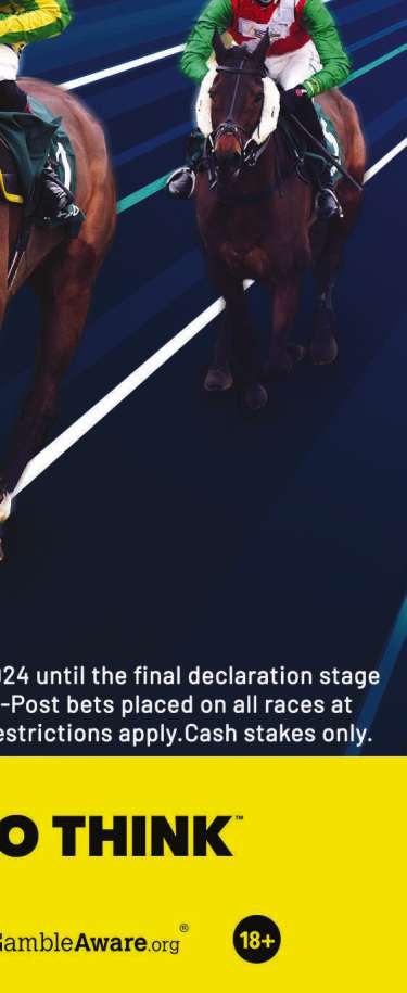 Ninth Race 8.15 - THE FIND MORE BIG DEALS AT BETUK HANDICAP STAKES (CLASS 6) Distributed in accordance with the Stakes and Prize Money Code. £4710 to the winning horse The second to receive £2210, the third £1104, the fourth £552 and the fifth £275. for four yrs old and upwards, Rated 46-55 (also open to such horses rated 45 and below). £45 stake if the horse is rated 46 or higher, or £9 stake if the horse is rated 45 or lower with £36 extra if the horse is declared to run Declare by 10.00 a.m. March 12th. Lowest weight 9st; Highest weight 9st 9lb Penalties, after March 2nd, 2024, for each race won 4yo to 6yo 5lb; 7yo and up 4lb. Bet UK has kindly sponsored this race and will provide the person responsible for the horse judged to be the best turned out with £25 15 entries, 2 at £9 and 13 at £45. - Closed March 8th, 2024. Owners Prize Money. Winner £3716; Second £1859; Third £929; Fourth £464; Fifth £232. (Penalty Value £4710.60) SS