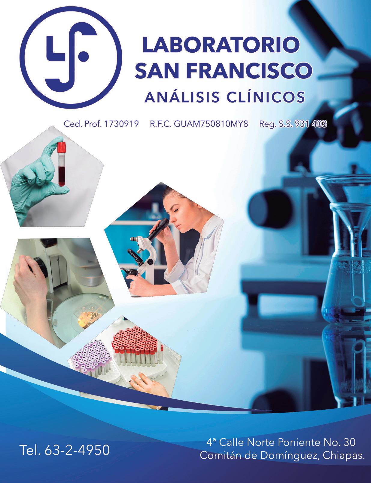 Laboratorio de análisis clínicos: QFB. Alfaro. Laboratorio de patología: Dra. Jiménez.