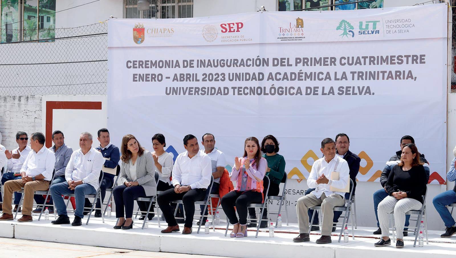 La secretaria de educación en el estado, Mtra. Rosa Aidé Domínguez Ochoa, anunció que esta unidad académica de la UTSelva es una muestra de la apuesta del gobernador del estado, Rutilio Escandón Cadenas, por el mejoramiento de las oportunidades de estudio en Chiapas, es el compromiso de dotar a los jóvenes de espacios cercanos que apoyen a la economía familiar,