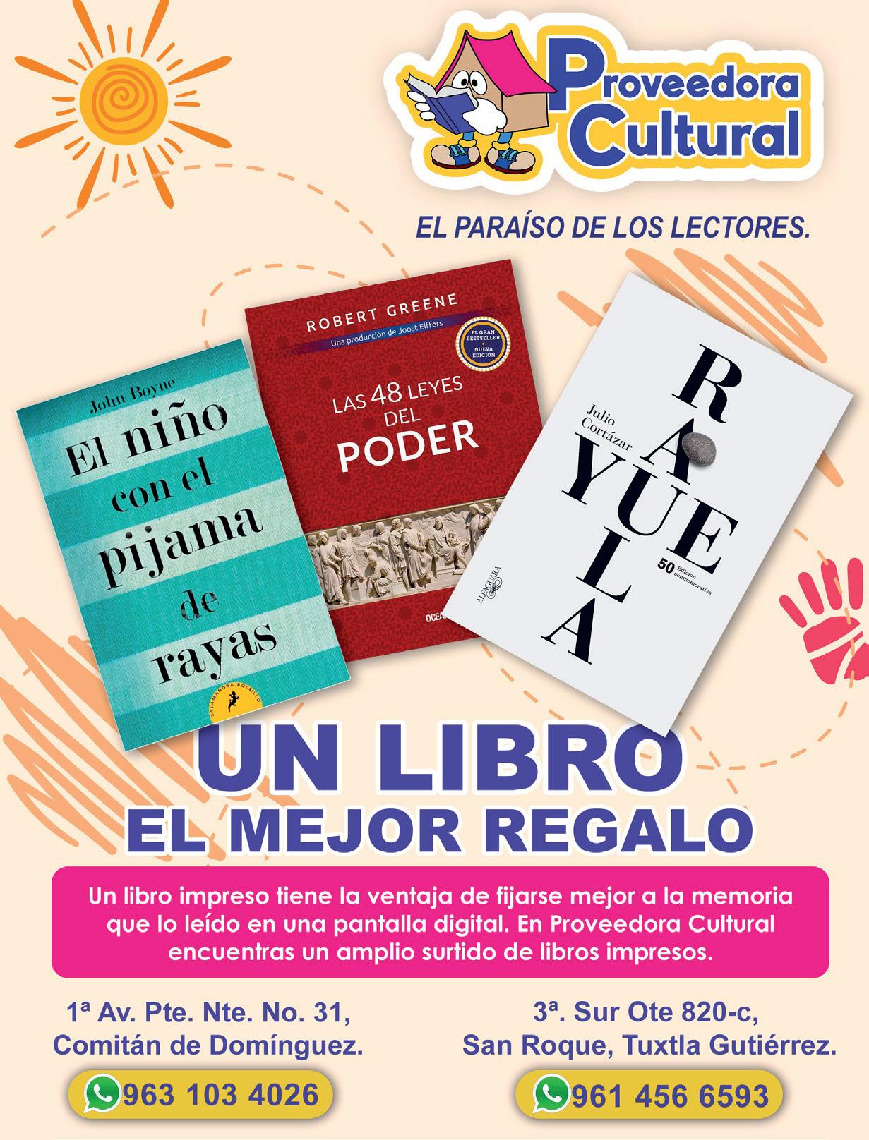 Este ejemplar está en tus manos gracias al patrocinio de: San Marcos, Itálika Kólob, Grupo Industrial López Pérez, Casa Bonita, Coafise, Proveedora Cultural de Comitán, PeopleSports, Café Naruma, Pillangó Café, Café 60, Café Kabil, Selva Maya Café, El campeador, Clínica Veterinaria 2000, Tasca Chapata, Pan Compuesto, Laboratorio San Francisco, Dr. José Ramón Mazariegos Díaz, Fundación