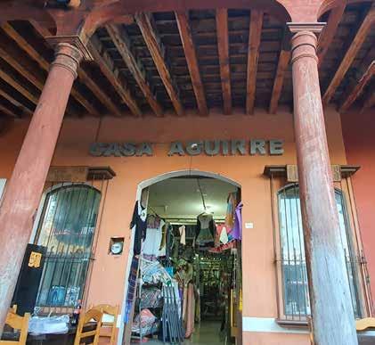 molcajetes, metates, petates de Tzimol, morrales de henequén (traídos del rumbo de Los Lagos), chamarras, cobertores, colchas de lana (hechas en Quijá, muy decoradas y vistosas), camisas color caqui, carcajes para pistolas, corbatas, botones, productos para calzado, para teñido de ropa, rebozos típicos, hamacas, bolsas para dama, trajes regionales. En el local número tres estaba la tienda de Doña Rosalía González viuda de Mandujano. En el local número cuatro (donde está actualmente Casa Aguirre) estaba ocupado por Doña Margarita Figueroa de Orrico; luego estuvo el bar “El gallo, pico de oro”, que vendía antojitos y tamales; posteriormente fue ocupado por la señorita Gema Carboney Castellanos; también lo ocupó Doña Josefita Guillén de Gordillo. El local de “Casa Aguirre” lo adquirí estando ocupado por la señora Gloria Morgan, con su Restaurante Alis). Hago la aclaración que, por lo general, los locales también sirvieron como casa habitación; es decir, al frente estaba la tienda y luego la recámara, un pequeño corredor donde estaban la cocina, el comedor y un w.c. rudimentario de cajón (Sabino se ocupaba de asear dichos w.c.). El local número cinco estaba ocupado por la tienda de Doña Leovigilda, ella siempre tenía cenzontles muy cantadores, que criaba desde pequeños, vendía cera de abejas de Campeche, de color café, que se usaba como pegamento para tarjetas de cumpleaños, pegar cartas o remendar fotos. En el local número seis estaba la tienda de mi querida madrina Adrianita Solórzano, gran amistad de mi abuela (mamá Beka), y de su hermana Doña Chenita. En el local número siete estaba la tienda de Doña Crispita Solórzano, que vendía telas y manta. En el local número ocho estaba la tienda de doña Conchita Irecta, hermana del reconocido maestro Walter irecta Alfonzo. Y la última tienda era ocupada por mis tíos Virgilio Trujillo y Margarita Monzón Rivas. A mi tía Margarita le debo mi afición al negocio. En su tienda vendía pantalones y camisas de manta que vendió mucho a tojolabales y tzeltales. En ese tiempo todos los negociantes eran personas muy queridas, generalmente se llevaban bien, a pesar de que vendían casi lo mismo nadie le quitaba clientela a otro, todo era armonía y respeto”.