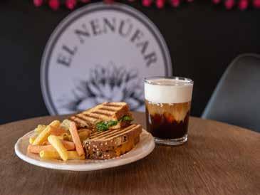 Visitar este lugar es entrar a un mundo relajado y acogedor, donde los sentidos se despiertan con el aroma embriagador del café recién molido y los dulces aromas de las delicias horneadas que adornan el mostrador o de sus originales paninis elaborados con ingredientes de la más alta calidad. Desde el momento de entrar por la puerta, uno queda cautivado por la atmósfera relajante y la decoración encantadora del lugar. Las paredes están adornadas con coloridas ilustraciones, figuras y artesanías de ranas y nenúfares, evocando una sensación de naturaleza y tranquilidad. La iluminación tenue y cálida crea un ambiente íntimo y acogedor, ideal para conversaciones profundas o simplemente disfrutar de un momento de paz. El personal de El Nenúfar es excepcional, siempre con una sonrisa en el rostro y