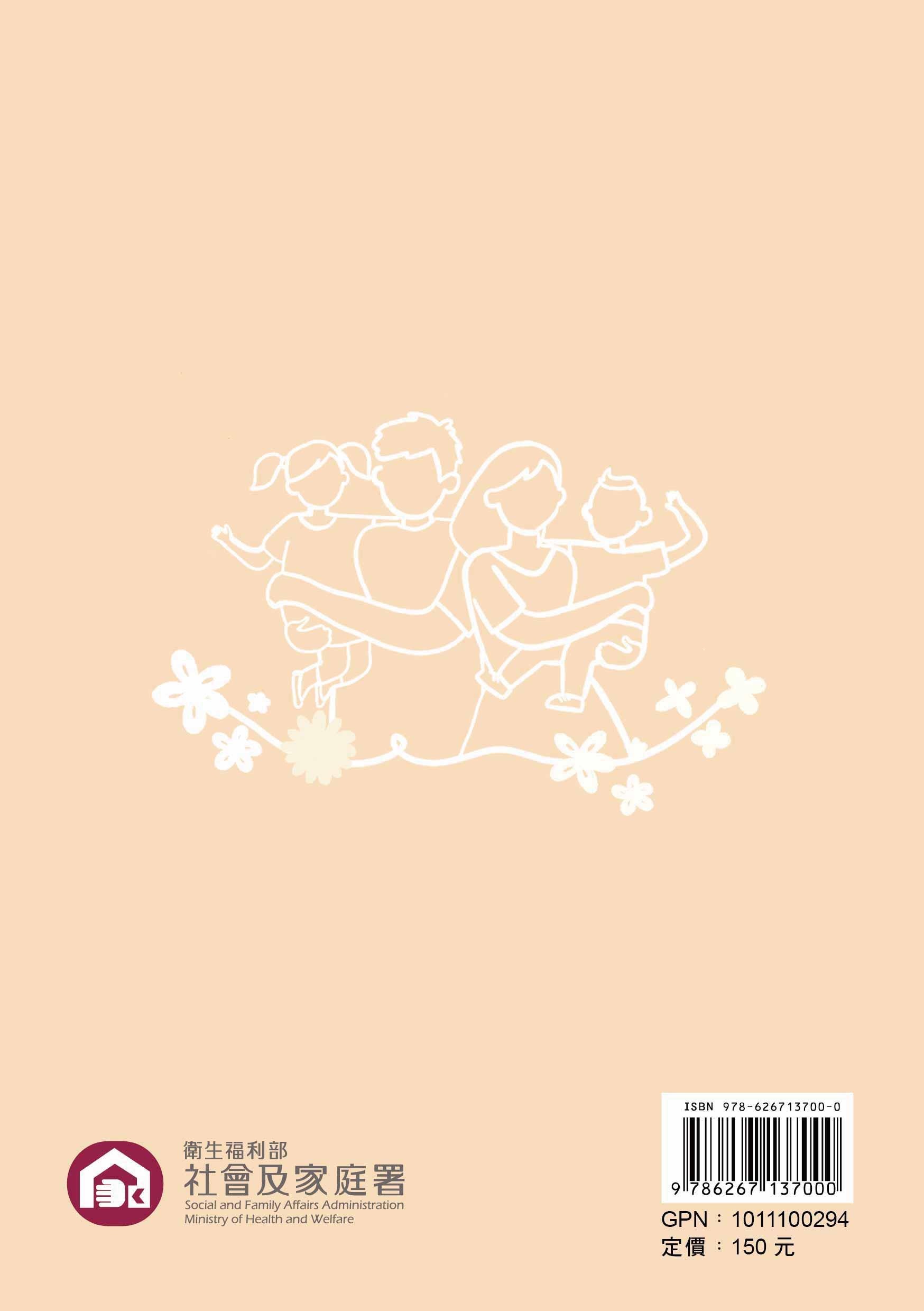 育兒指導服務工作指引手冊 育兒指導服務工作指引手冊/葉郁菁編-- 初版. - 臺北市:社家署,民 111.5 面;公分 ISBN 978-626-7137-00-0 ( 平裝 ) 1. 育兒指導 2.CST: 手冊 428.026 111003488 國家圖書館出版品預行編目 (CIP) 資料 書名:育兒指導服務工作指引手冊 編印單位:群鋒企業有限公司 編者:葉郁菁 美編設計:陳玫芳 出版機關:衛生福利部社會及家庭署 出版年月:中華民國111年5月 定價:150元 版次:111年5月(初版) ISBN:978-626-7137-00-0 GPN:1011100294 著作財產權人:衛生福利部社會及家庭署 著作權管理資訊: 著作財產權人保留對本書依法所享有之所有著作權利。 欲重製、改作、編及或公開口述對本書全部或部分內容者,須先徵得著作財 產權管理機關之同意或授權。 96