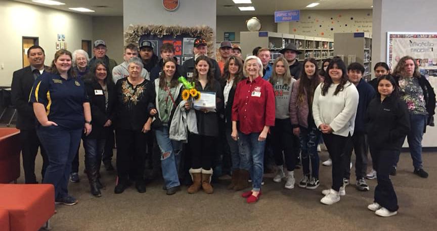 Benton Co. Ag Student of the Month | Benton Co. Farm Bureau celebrated Rogers Heritage High School student Shelby Dean for being chosen as the January Outstanding Ag Student of the Month! Assistant Principal Stephanie Shriner helped organize a surprise award presentation which included Shelby’s family and fellow FFA members.