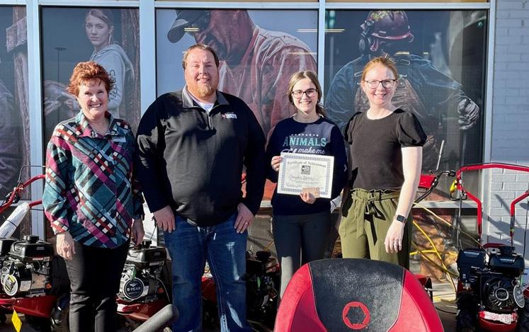 Baxter Co. Ag Student | The Baxter Co. Farm Bureau Board and Young Farmers and Ranchers (YF&R) Committee recently announced Jayden Dutcher as its February Ag Student of the Month recipient. Jayden is the daughter of Tiffani Cowart and a member of the Cotter FFA Chapter. The award is sponsored by the Baxter Co. Farm Bureau Board of Directors, the YF&R Committee and Orscheln Farm & Home (Tractor Supply & Co.). Pictured (from left) are Becky Wilson, Baxter Co. agency manager; Jeremy Welch, Orscheln Farm & Home store manager; Jauden Dutcher, and Hannah Walker, YF&R Committee Member.