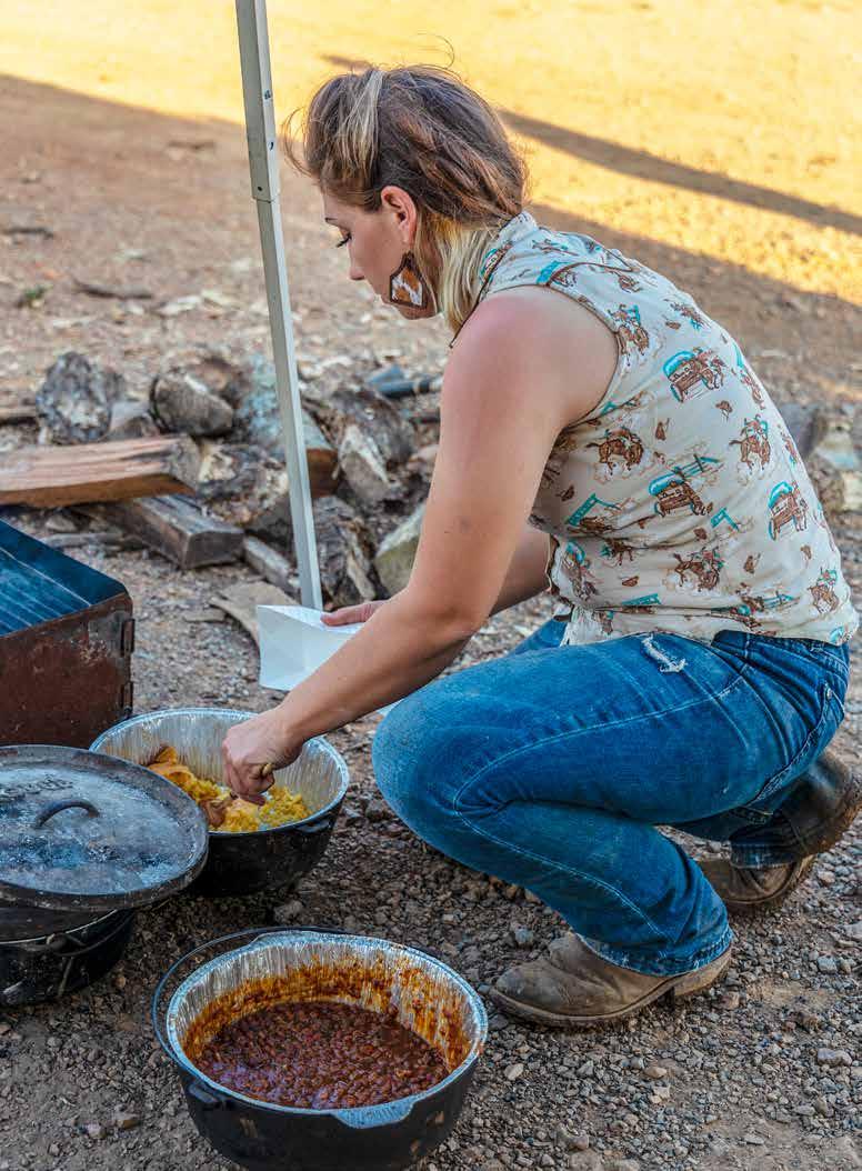 In addition to catering and vendor work, there’s an educational aspect as well. During the Frontier Days, Smith sets up demonstrations for old-fashioned cooking featuring open fire and a multitude of cast iron, all from the back of her chuckwagon. She also leads classes during some of the local 4-H camps and says you can even make ice cream in cast iron.