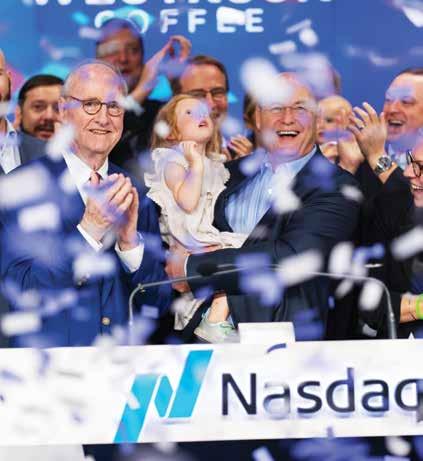 Westrock Coffee co-founders Joe (left) and Scott Ford rang the opening bell on the NASDAQ Exchange in late August, setting off a celebration and becoming the newest publicly traded Arkansas-based company. Westrock has grown through expansion and acquisition and now provides more than 20 million cups of coffee daily.