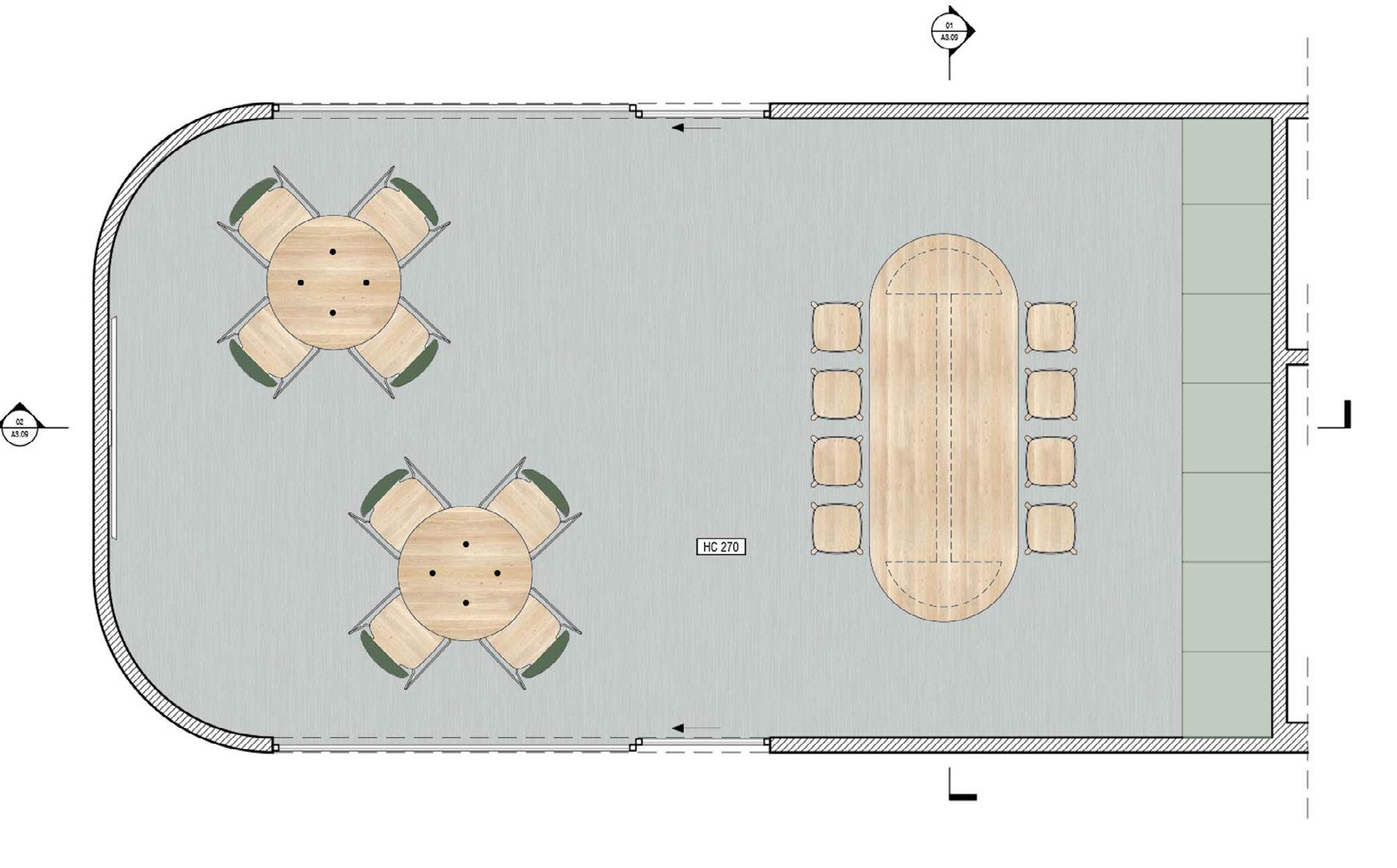 L’ufficio appartiene a Louisiana S.P.A., che opera nel settore delle vendite di pelle pregiata. Lo scopo di questo intervento è riconfigurare il layout per creare nuovi uffici chiusi e aggiornare gli spazi in base alle esigenze del cliente. Uno degli obiettivi è rinnovare l’area d’ingresso creando un piccolo atrio che ospiti un bagno, una sala server, un locale di servizio e un archivio. Sarà dotato di due porte d’ingresso: una per il trasferimento delle merci e l’altra per l’accesso al luogo di lavoro. Un altro obiettivo è dividere il grande open space in tre aree: uffici, magazzino e laboratorio. Questo comporterà l’aggiunta di stanze chiuse come un’area break, tre piccole sale riunioni e due uffici. Nell’open space, l’intero impianto sarà a vista, con i canali esistenti riposizionati. Gli uffici chiusi saranno costruiti come scatole di vetro con altezze inferiori al soffitto reale, collocati sotto i tubi.