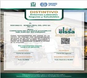 Y extiende su felicitación a: Minera Real del Oro por haber renovado su Distintivo ELSSA