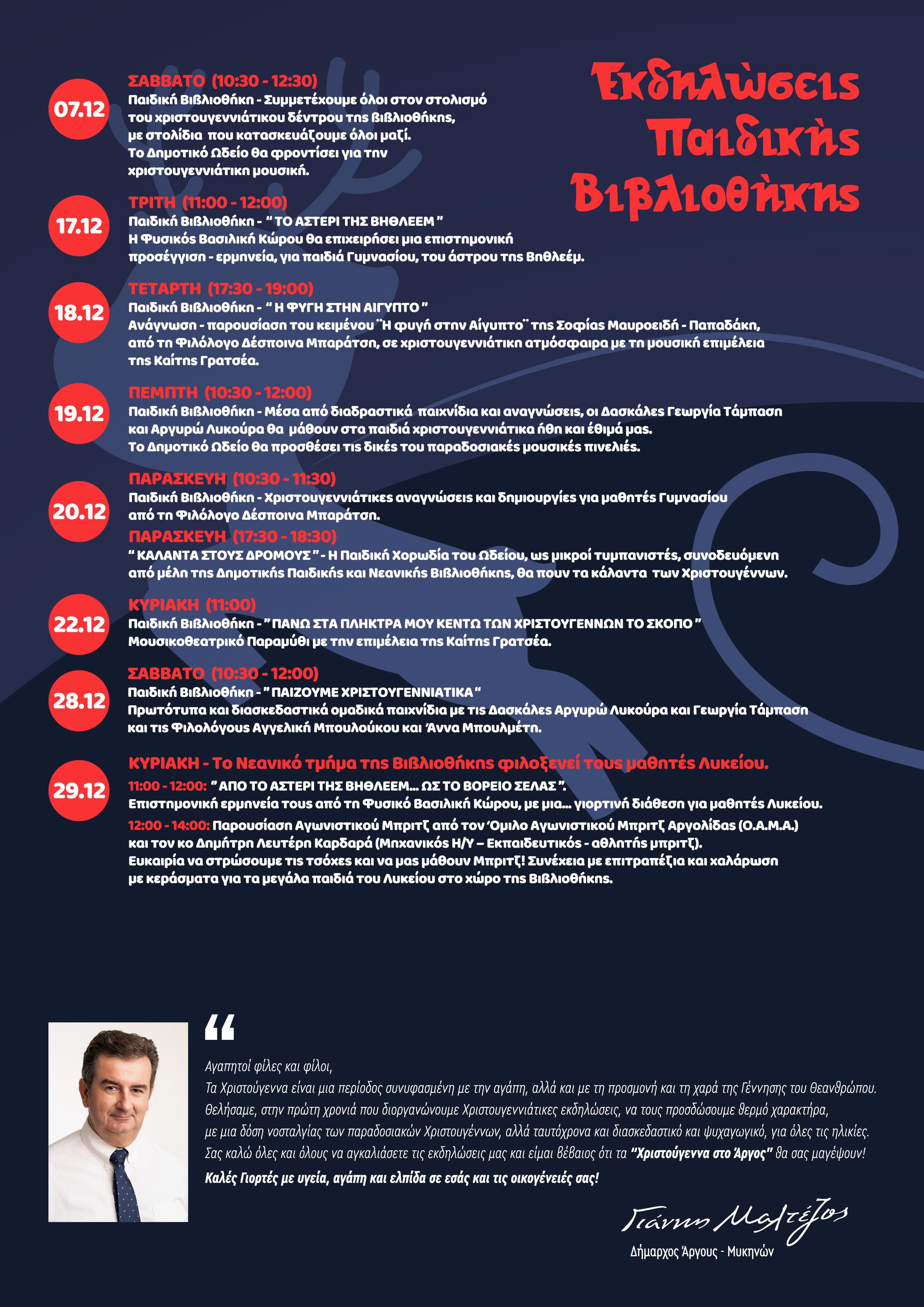 ΠΡΟΓΡΑΜΜΑ ΕΚΔΗΛΩΣΕΩΝ ΧΡΙΣΤΟΥΓΕΝΝΑ ΣΤΟ ΑΡΓΟΣ 2024