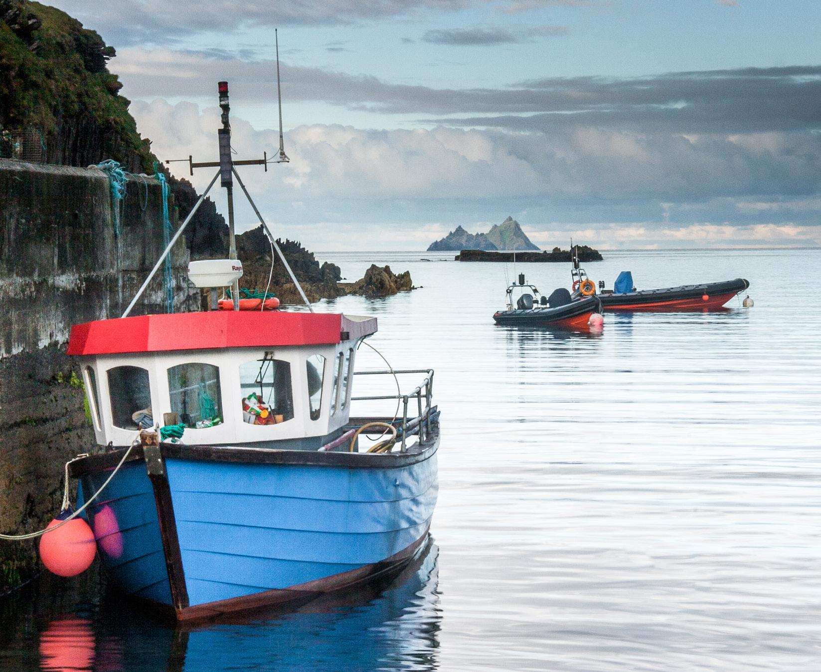 Portmagee is a postcard-perfect fishing village with plenty of character and the honor of being the jumping-off point for the Skellig Islands. Laura and Griff were joined on the trip by two of their three sons, and for the boys the name carried a special spark. The village itself is named after Captain Magee, a pirate who once roamed these waters. With Magee blood in their family line, the brothers loved the idea that a trace of that swashbuckling spirit might run through their veins.