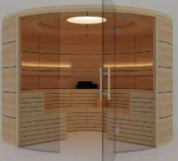 Su forma circular nace con el objetivo de satisfacer los deseos y exigencias más especiales, en cuanto a diseños y acabados. Además, su diseño propicia la comunicación y el espíritu ancestral de la sauna finlandesa.