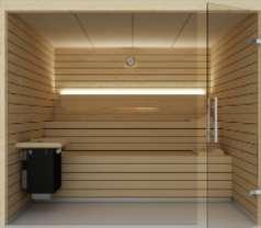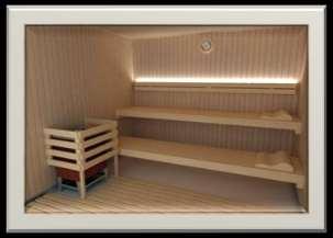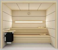 Pensada para el uso particular, también se puede adaptar, a través del diseño de saunas a medida, al uso profesional ocultando el calefactor detrás de los bancos para mayor seguridad de los usuarios.
