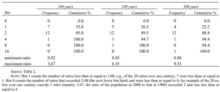 Figure 18: Frequency histogram of ratios in Table 2; Source: United Nations World Population 2300
