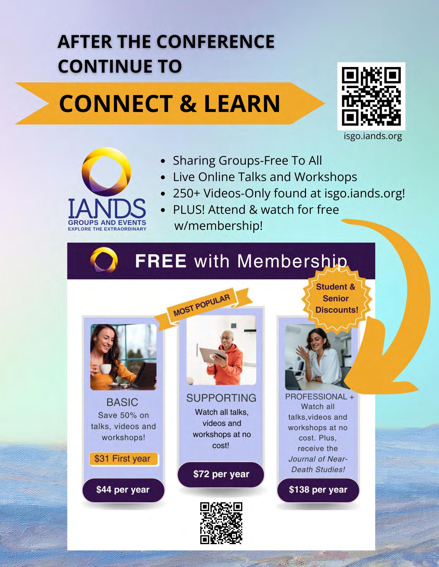 The theme of our conference this year is the transformation that often follows near-death experiences and related experiences. However, you don’t need to have had such an experience to be transformed: According to our previous conference attendees, the very process of attending the conference can be transformative. I hope this is the case for you: that you leave feeling enhanced and expanded in your sense of self, service, and sense of what makes our Earthly lives most meaningful and of what lies beyond it. Have a wonderful conference!