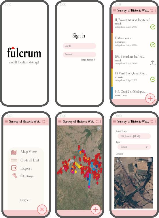 The app’s interface was customized to support the systematic documentation of water structures across 60 hectares in Bijapur. Key features included: