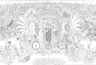 Exploring the intricate detailing of Pichvai art led to a layered approach in my representation—mixing traditional motifs with bold compositions. The reinterpretation emphasizes timeless artistry while celebrating the delicate craftsmanship that defines this legacy.