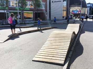 Ajutine mööbel ja lihtsad rajatised annavad võimaluse ruumi kasutamist väheste vahenditega muuta või testida. Annelinna kergliiklustee. Maastikuarhitektuur TajuRuum / Foto: Terje Ong