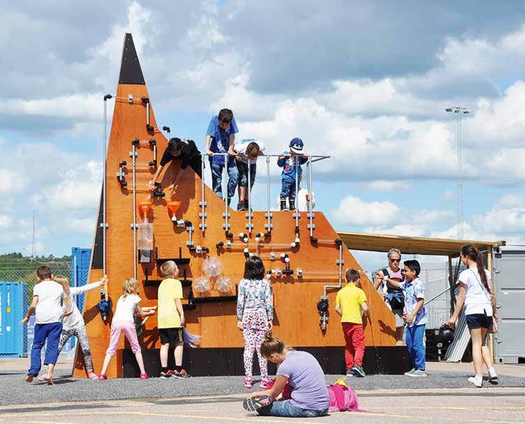 Sõnades tabamatud vormid ja atraktsioonid treenivad ka kujutlusvõimet. Mida siin teha saab? Kuidas kohta sõbrale või emale-isale kirjeldada? Interaktiivne veeinstallatsioon. Autor Amanda Almvide, koostöös Bergeti mänguväljaku autorite Akay ja E. B. Itso’ga. Jubileumsparken, Göteborg / Foto: Amanda Almvide