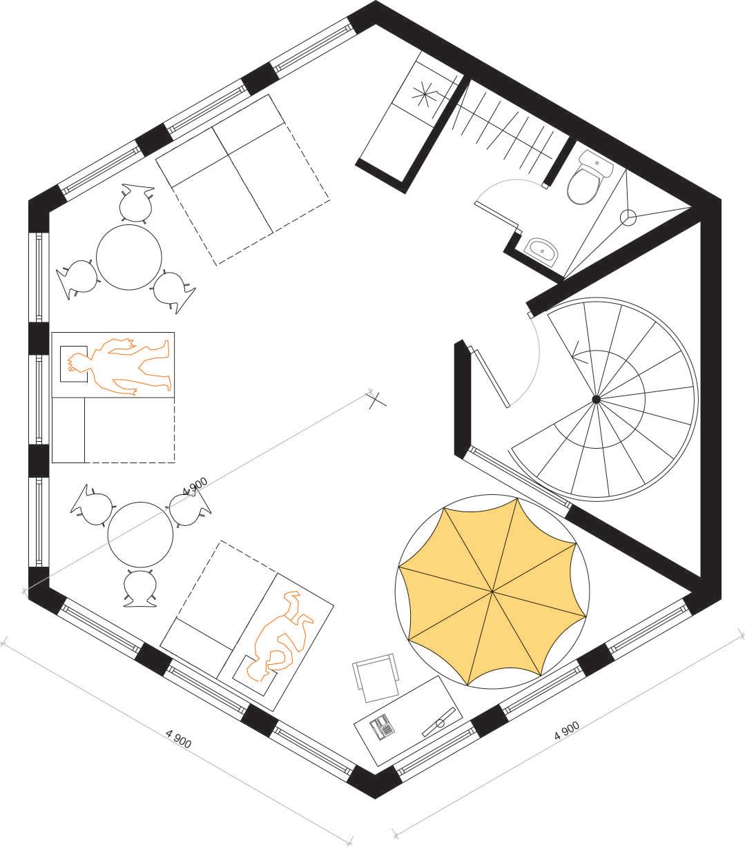 essees toreda näite ühest lapsest, kelle lemmikauto oli lihtne klots, millel olid rattad küljes ja see ei kujutanud ühtki päris autot. see oli kõige ägedam, kuna seda sai kujutleda ükskõik milliseks autoks. hermann küsib, kas ka ruum saaks olla nagu klotsiauto, ning koos arhitektidega prooviti selline leida. nende idee on niisiis ruum, mis on ükskõik milleks kujuteldav. see võimaldab lõputul arvul erinevaid lahendusi: milline ruum on ja kus sa ise selle suhtes oled – sees või väljas, justkui seinte vahele pigistatud või on sul laialt ruumi – ja kus on teised – on nad sinust eraldatud või sinuga koos.