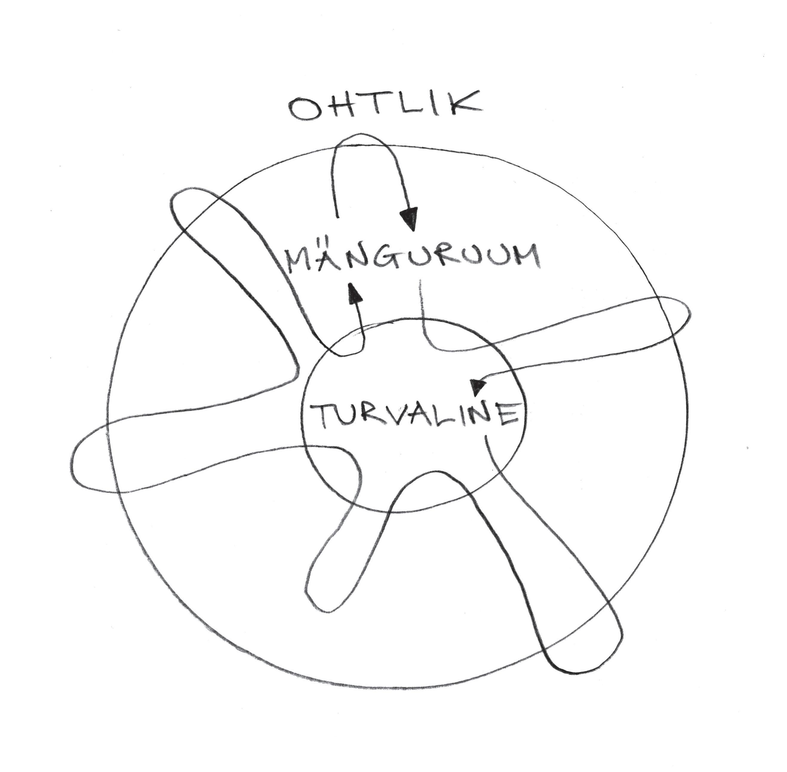 M s: uuemate lasteaedade puhul on selle peale juba mõningal määral mõeldud, näiteks terrasside näol, mis toetavad üleminekut toast õue ja vastupidi. see on ka natuke vahepealne ruum. kino projekt meenutab mulle ühte norra lasteaeda, kuhu üks meie õpetaja tööle läks. neil on väga aktuaalne õuelasteaia teema. see lasteaed ei ole küll päris õuelasteaed, aga nad toimetavad palju väljas, mõnikord terveid päevi. hoovis on mäekesed ja kuurialused – palju vahepealseid ruume –, mis pakuvad tegevusvõimalusi, ja kohad, kus saab isegi pikutada. Meil eestis on õuesõppeklassid, aga see on tegelikult vale sõna. see ei ole klass, selles ruumis sees ei toimu midagi. Pigem on see staap, sealt saab õues tegutsemiseks asju võtta. ka omamoodi vaheruum. tegevus ise toimub õues, aga see ruum toetab. saan aru, et kino poolt välja pakutud ruumide eripära on see, et nad on osaliselt avatud ja seal saab teha muid asju, kui lihtsalt õues olles?