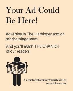 Organizations interested in advertising in The Harbinger should contact editors for rates and policies. Advertising that appears in the publication is not necessarily endorsed by The Harbinger or its staff members. Concerns about published errors may be submitted to arhsharbinger@gmail.com. Staff members strive to correct errors prior to publication; however, if a significant error is printed, editors will determine the manner of a correction.