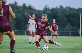 Senior Mia Dobosh and her teammates celebrate a point during the CMADA finals game. The Algonquin girl’s volleyball team beat Wachusett 3-0. PHOTO BETSY BERTONAZZI(Top) Sophomore Dylan Lochhead shoots on ActonBoxborough’s goal in the girls’ varsity soccer home opener on Sep 10. PHOTO JOE LAMBURN