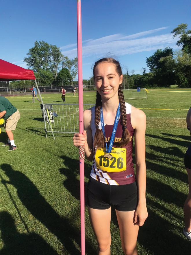 After a throw of 112’ 9”, junior Ellie West phal won first place in the javelin event at the Massachusetts Interscholastic Athletic Asso ciation (MIAA) Division 2 State Track Meet, hosted by Hingham High School, on May 29.